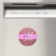 Die Glitzern Rosa Rosengold Rosa Rosa und Glam blush Rosa Glitzer sind ein weißer Monogramm-Name und ein Initialmagnet. Individuelle Name und Monogramm sind in einem handgeschriebenen, eleganten Skript mit rosa Hintergrund geschrieben. Ein perfektes Geburtstag- oder Weihnachtsgeschenk!