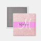 Die Glitzern Rosa Rosengold Rosa Rosa und Glam blush Rosa Glitzer sind ein weißer Monogramm-Name und ein Initialmagnet. Individuelle Name und Monogramm sind in einem handgeschriebenen, eleganten Skript mit rosa Hintergrund geschrieben. Ein perfektes Geburtstag- oder Weihnachtsgeschenk!