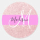 Die Glitzern Rosa Rosa Rosa Rosa Rosa und Glam Rosa Rosa Rosa Rosa Glitzer, Monogramm Name und Original Klassischer Rundaufkleber. Individuelle Name und Monogramm sind in einem handgeschriebenen, eleganten Skript mit rosa Hintergrund geschrieben. Ein perfektes Geburtstag- oder Weihnachtsgeschenk!