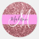 Die Glitzern Rosa Rosa Rosa Rosa Rosa und Glam Rosa Rosa Rosa Rosa Glitzer, Monogramm Name und Original Klassischer Rundaufkleber. Individuelle Name und Monogramm sind in einem handgeschriebenen, eleganten Skript mit rosa Hintergrund geschrieben. Sie können die Textfarbe, den Schriftart und die Schriftgröße mit der Option Anpassen ändern.