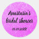 Personalisierter Rundaufkleber für ein Brautparty. Dieser Glam-Aufkleber zeichnet sich durch eine elegante schwarze Schrift und einen lila Glitzer-Glitzern-Hintergrund aus. Sie können es mit Ihrem Namen und Brautparty-Datum personalisieren. Sie können sogar die Textfarbe und den Stil des Schriftartes mit der Option Anpassen ändern.