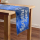 Mit diesem schicken Tischläufer können Sie Ihren Speisesaal neu erfrischen und ein schlichtes Grau/Silber-Monogramm auf einem lebendigen, blau gebürsteten Metallhintergrund präsentieren, das durch den schimmernden silbernen Glitzer noch verstärkt wird. Dieser Läufer ist dafür konzipiert, eine Touch Eleganz an Ihren Tisch zu bringen und verbindet modernen Stil mit einer personalisierten Touch. Ideal für lässige Mahlzeiten und besondere Anlässe, ergänzt es das kulinarische Angebot um ein stilvolles und raffiniertes Element, das das Ambiente unterstreicht und Ihren Tisch hervorhebt. Design es auf kleinen, mittleren und großen Tischläufern.