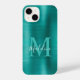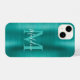 Glam Brushed Metallic Aquamarine Elegant Script Monogram iPhone 14 Fall