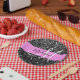 Glam Chic Pink Black Glitzer Sparkname Monogram Pappteller