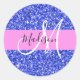 Glam Dark Blue Pink Glitzer Glitzern Name Monogram Runder Aufkleber