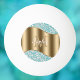 Personalisieren Sie große goldene Monogramm und Name in weißen Skripten auf Goldwelle mit weißen Diamanten auf aquamarin.