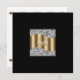 Personalisieren Sie große goldene Monogramm und weiße Skriptnamen auf der Goldwelle mit weißen Diamanten auf schwarz und Nachricht auf der Rückseite.