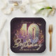 Celebrate a milestone fortieth birthday in glamorous style with these retro disco ball and music notes paper plates. Featuring a dazzling, holographic-style mosaic disco ball "40" surrounded by swirling gold music staves, colorful music notes, and glowing sparkles on a rich dark purple background. Perfect for a 70s disco-themed party, a music lover's birthday, or an elegant dance celebration. Update the beautifully elegant script name and the date text at the bottom to perfectly match your special milestone event.