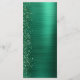 Dieses elegante, moderne Hochzeitsmenü besticht durch einen Diamant-Glitzer-Rahmen in Imitaten auf einem smaragdgrünen Imitat mit gebürstetem Metall. Der benutzerdefinierbare Text kombiniert weiße Handschriftenschrift und serifenlose Schriftart. Das grün gebürstete Metall und der Glitzer werden auf der Rückseite wiederholt.