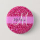 Glam Girly Hot Pink Glitzer Glitzern Name Monogram Button