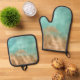 Glam Gold Aqua Glitz Glitzer Ofenhandschuh & Topflappen-Set