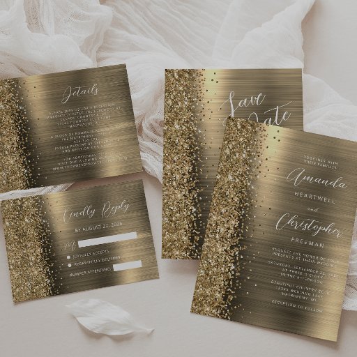 Glam Brushed Metal Glitter Gold Wedding SuiteDesignt von Akhates Designs