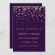 Diese eleganten Save the Date-Einladungen haben einen reichen, tiefen lila Hintergrund und einen modernen goldenen Konfetti-Look.
