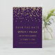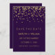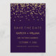 Diese eleganten Save the Date-Einladungen haben einen reichen, tiefen lila Hintergrund und einen modernen goldenen Konfetti-Look.