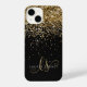 Glam Gold Glitzer Elegant Monogram iPhone Case. Dieses schicke Gehäuse mit elegantem goldglänzenden Glitzer auf schwarzem Hintergrund ist einfach zu personalisieren. Das Design enthält Ihr handgeschriebenes Skriptmonogramm mit hübschen Wirbel und Namen.