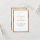 Ein verglaster goldener Rahmen und eine schwarze goldene Schriftzeichen-Kalligrafie mit eleganten Einladungen für Hochzeiten. Diese luxuriöse minimalistische Hochzeitseinladung ist perfekt für jedes elegante und raffinierte Glam-Mädchen. Dieses Design eignet sich ideal für ein trendiges und stilvolles Party. Entwerfen Sie Ihre eigenen Nachrichten und Informationen. Alle Designs sind gedruckt.