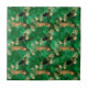 Eleganter Goldiger Tiger und eine Dame in einem grünen Tigerprint mit tropischen Blätter in Grün und Gold.