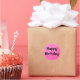 Glam Happy Birthday Klassiker rund Aufkleber mit einem heißen rosa Glitzer Glitzern Hintergrund und fett schwarz schreiben. Ideal für eine Geburtstagsfeier mit Mädchen!