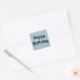Glam Happy Birthday Square Aufkleber mit einem hellblauen silbernen Glitzer Glitzern Hintergrund und fett schwarz schreiben. Ideal für eine Geburtstagsfeier mit Mädchen!