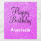 Personalisierte Girly und Glam Happy Birthday Wein-Label mit einem lila Glitzer funkelnden Hintergrund und elegante Schwarz-Weiß-Schrift. Sie können einfach den Namen Ihrer Wahl hinzufügen und die Farbe und den Schriftart des Namens ändern, indem Sie die Option anpassen!