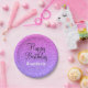 Personalisierte Girly und Glam Happy Geburtstag Papierteller mit einem ombre lila Glitzer Glitzern Hintergrund und elegante Schwarz-Weiß-Schrift. Sie können einfach den Namen Ihrer Wahl hinzufügen und die Farbe und den Schriftart des Namens ändern, indem Sie die Option anpassen!