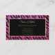 Die Visitenkarte ist aus glasklarem, rosa und schwarzem Zebrastreifen mit einem luxuriösen Rahmen aus schwarz und gold. Ideal für Friseur- und Schönheitssalons.