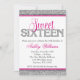 Glam Imitats Glitzer Silver Hot Pink Sweet 16 Einladung
