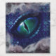 Mythisch blaues mittelalterliches gotisches Drachenauge mit lila Glam-Tinte und Nebel.