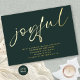 Glam Joyful Script Weihnachten Party Green Real Foil for Joyful, die in einem großen modernen spielerischen Set Kalligrafie, wie auch die Typografie mit allen Party-Details. Der dunkelgrüne Hintergrund auf jeder Seite kann, wenn gewünscht, über die Option Weitere bearbeiten in eine andere Farbe geändert werden. Einfach mit Ihren Party-Details personalisieren.