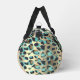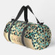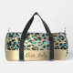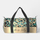 Blau-schwarze Leoparden auf einer glänzenden goldenen Kulisse mit goldgelbem Perlenhalskettenrand, wo oben eine goldglänzende Kante steht, an der man sie mit einem Namen, einer Phrase oder einem Logo personalisieren kann, oder man behalte sie wie mit den Worten "Boss Lady". Chic Glam Leopard Thema.