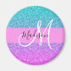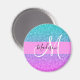 Glam Lila Aqua Glitzer Sparkle Gradient Monogram Magnet
