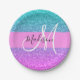 Glam Lila Aqua Glitzer Sparkle Gradient Monogram Pappteller