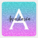 Glam Lila Aqua Glitzer Sparkle Gradient Monogram Quadratischer Aufkleber