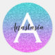 Glam Lila Aqua Glitzer Sparkle Gradient Monogram Runder Aufkleber