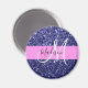 Glam Navy Blue Pink Glitzer Glitzern Name Monogram Magnet