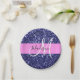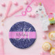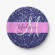 Glam Navy Blue Pink Glitzer Glitzern Name Monogram Pappteller