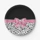 Glam Pink Bow Diamond Black Snow Leopard Pappteller