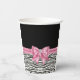 Glam Pink Bow Diamond Zebra Print Black Pappbecher