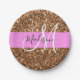 Glam Pink & Bronze Glitzer Glitzern Monogram Name Pappteller