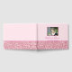 Sammle Erinnerungen in diesem rosa Bat Mitzvah Gästebuch mit dem Foto deiner Tochter. Das hellpastellfarbene Foto Ihrer Tochter wird in einem dunklen Rose-Rosa oben auf der Vorderseite gerahmt. Unten ist ein lustiger Skript-Schriftart in tiefrosa für den Namen Ihrer Tochter und dann ein kleiner und viel einfacher Schriftart, wo Sie das Datum der Bat Mitzvah hinzufügen können. Das Design ist mit einem dicken Rand aus rosa Imitat Glitzer am unteren Ende, der sich um die Rückseite. Mit diesem rosa personalisierten Bat Mitzvah Gästebuch kreieren Sie einen schönen Sake für Ihre Tochter.