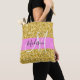 Glitzer mit glänzenden und gürtelrosa und gelben goldenen Glitzern mit weißem Monogramm-Namen und Anfangsbeuteltasche. Individuelle Name und Monogramm sind in einem handgeschriebenen, eleganten Skript mit rosa Hintergrund geschrieben. Sie können die Textfarbe, den Schriftart und die Schriftgröße mit der Option Anpassen ändern. Ein perfektes Geburtstag- oder Weihnachtsgeschenk!