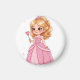 Niedliche Chibi-Prinzessin mit glänzend rosa Ball-Gown, Glitzer-Krone, lang fließend blondes Haar, glänzend Zauberstab, glänzende Aufkleber-Kontur.
