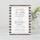 Kostengünstige Ankündigungen und Party Einladungen für kundenspezifische Abschluss-Fotos mit einfachen Vorlagen für die Anpassung. Dieses elegante feminine Design besticht durch einen goldenen Rahmen in der Rose der Imitate und einen schwarz-weißen Streifen im Hintergrund. Personalisieren Sie es mit Ihrer Abschluss-Ankündigung und Party-Details auf der Vorderseite und fügen Sie Ihr Foto auf der Rückseite. Verwenden Sie die Designtools, um die Schriftartes und Farben des Textes zu ändern, mehr Fotos hinzuzufügen und ein einzigartiges Design für Ihren Abschluss zu schaffen!