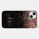 Glam Rose Gold Glitter Elegant Monogram iPhone Case. Easily personalize this trendy chic phone case design elegant rose gold sparkling glitter on a black background. The design feys your handwritten script monogram with pretty swirls and name.