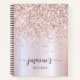 Girly Blush Rose Gold Glitzer Glam Metallic Monogram Name Script Custom Personalisiert Cookbook Rezept Notebook. Diese Design mit Ihrem Vornamen in einem hübschen handgeschriebenen Stil Swash Schwanz Schriftart Typografie auf Imitaten Rose Gold metallische Folie mit funkelnden Glitzer Rand. Diese sind einfach zu anpassen und können als Cookbook, Rezeptplaner und mehr verwendet werden. Auch große stilvolle feminine Geschenke zum Geburtstag, Muttertag, Hochzeit, Brautparty, Jubiläum und für alle, die Lieben glamourösen Stil.