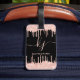 Sylish, Girly, Elegant, Light Rose Gold Glitzer Tropfen 2 Monogram Script benutzerdefinierten personalisierten Namen mit Monogramm Gepäckanhänger auf schwarz. Mit einem modernen Luxus-Imitat hellrosa Rose Gold Glitzer Tropfrahmen, einem großen doppelhandgeschriebenen Monogramm-Skript-Schriftart mit Swashes (große Initialen), und einem Serif-Typ Schriftart-Namen in hellrosa auf schwarzem Hintergrund. Einfach zu personalisieren.
