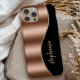 Dieses Design verfügt über eine schicke Rose Gold Imitate Folie Bild auf der verlassen in Form einer Welle umrahmt von Rose Gold Imitate Glitzer. Auf der rechten Seite, personalisieren Sie es mit Ihrem Namen in Rose Handschrift Schriftart auf einem schwarzen Hintergrund.