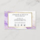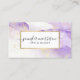 Diese kreative Visitenkarte bietet einen weichen Lavendel-lila Aquarellhintergrund mit Imitaten Goldstaubflecks für ein elegantes, abstraktes Design. Personalisieren Sie den eleganten Skripttext mit Ihrem Namen oder Firmennamen. Diese doppelseitige Karte bietet viel Platz auf der Rückseite für Ihre Kontaktinformationen und Social Media. Originale Kunst und Design © 1201AM Design Studio | www.1201am.com