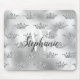 Glam Silver Foil Glitzer Crown Pattern Monogram Mousepad