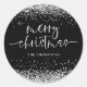 Glam Silver Glitzer Frohe Weihnachtsschwarz Runder Aufkleber